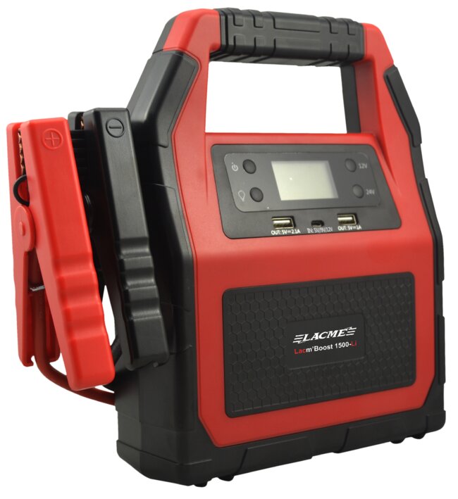 Booster Lacm'Boost 1500-Li. Au Lithium, 12 V / 24 V - 600 A utiles au démarrage (1500 A max). Équipé d’une lampe et de sorties USB / Allume-cigare. Compact, chargeur-secteur fourni. Pour quad, utilitaire, micro-tracteur et camion compact.