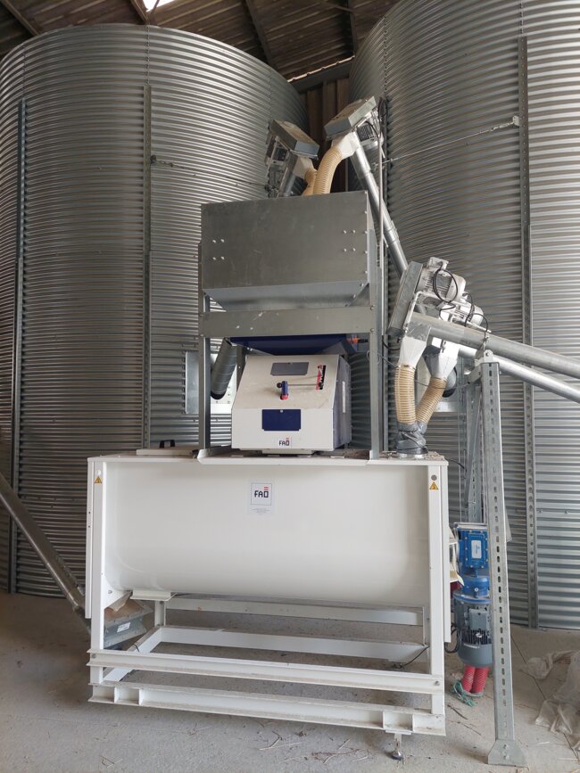 1 mélangeuse horizontale (1 000 l) moteur 4 kW.